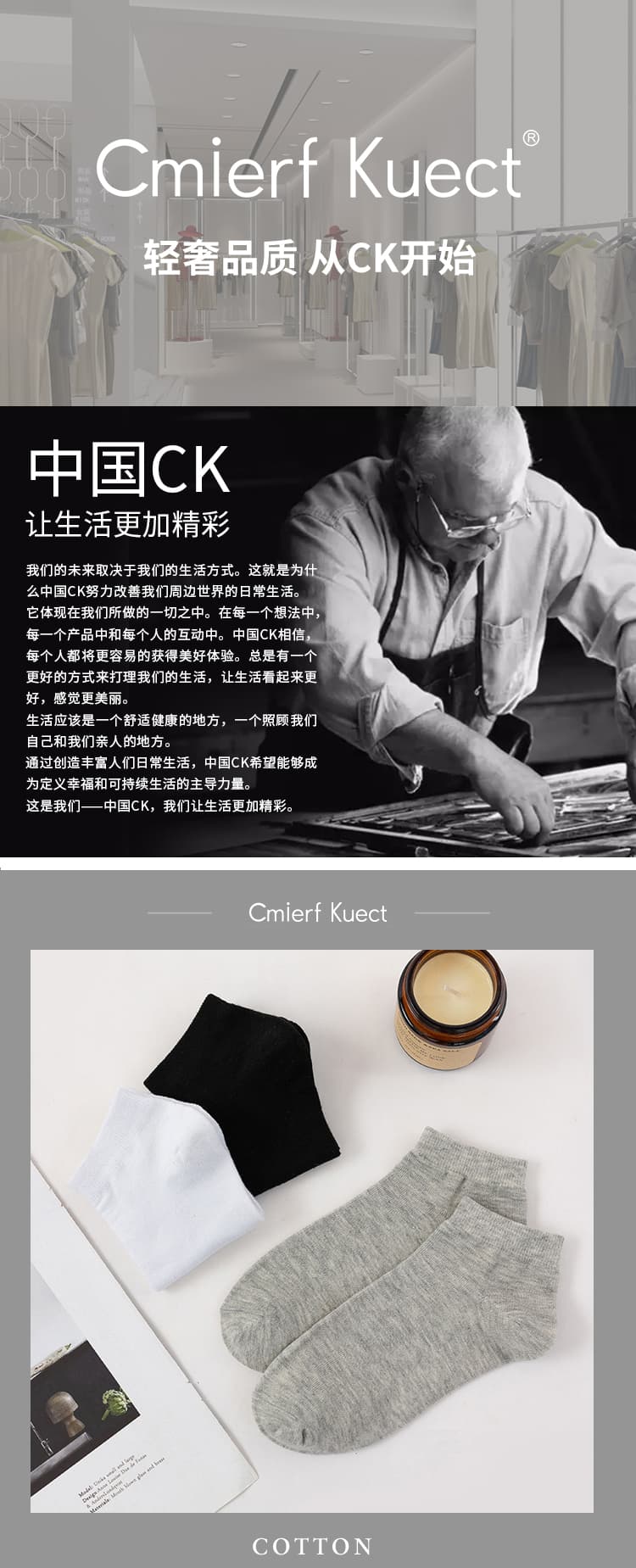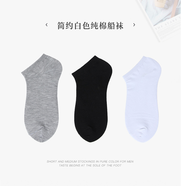 Cmierf Kuect 简约白色纯棉船袜(5双装)CK-FS爆品1016[灰色/黑色/白色混色随机发】【新疆/西藏/宁夏/青海/内蒙古/甘肃/黑龙江/吉林/辽宁不发货]
