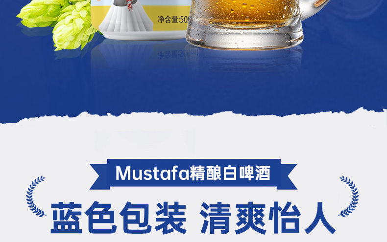 J-[热评1000+】啤酒5箱Mustafa精酿白啤酒酒精度5.3度原麦汁浓度13度500ml/罐12瓶*5箱