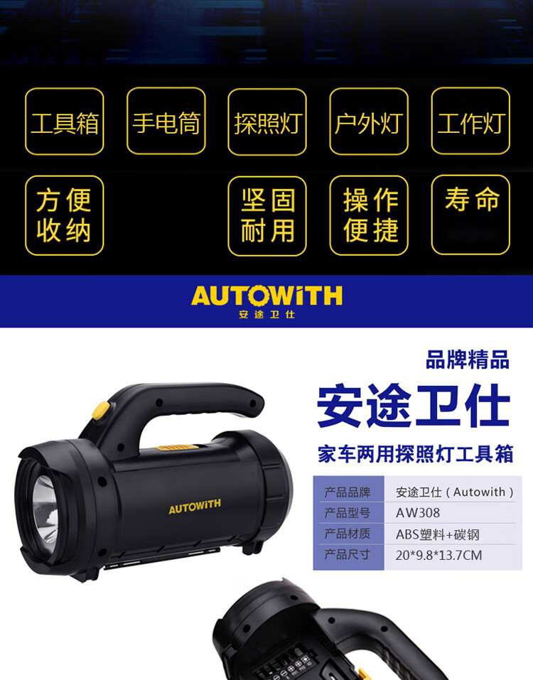 安途卫仕家车两用探照灯工具箱AW308