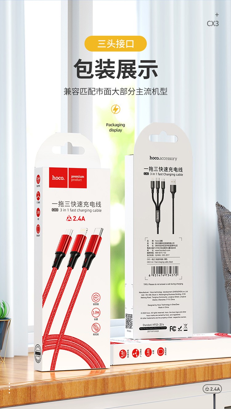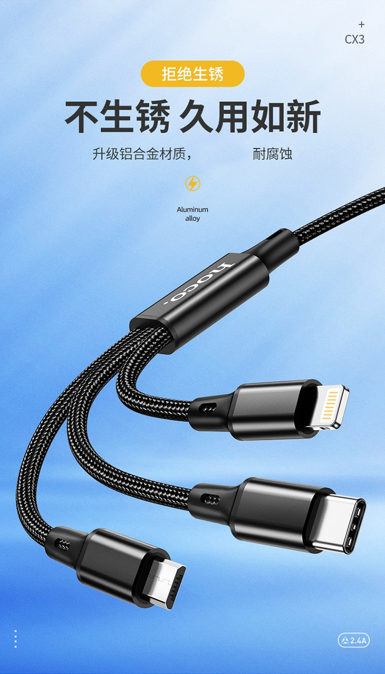 浩酷(hoco.)CX3一拖三快速充电线