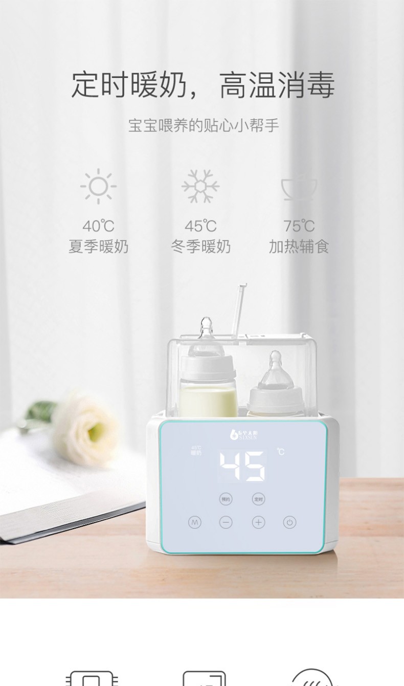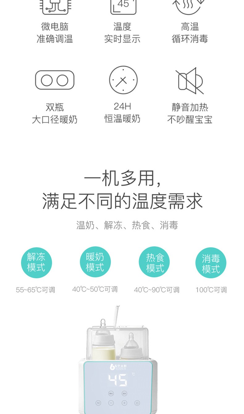 爆品6个太阳母婴系列预约定时温奶器暖奶器解冻器加热辅食杯子餐具消毒神器保温神器高温消毒器ZCW-N10[新老包装随机发货】